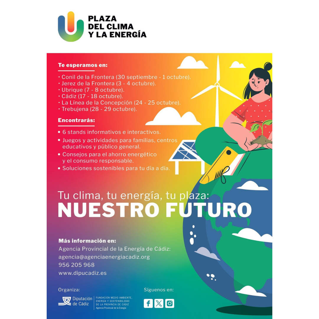 🌍✨ ¡Llega a la Plaza del Clima y la Energía a la provincia de Cádiz! Un espacio abierto y gratuito donde toda la ciudadanía podrá aprender, jugar y descubrir cómo cuidar el planeta con gestos sencillos.