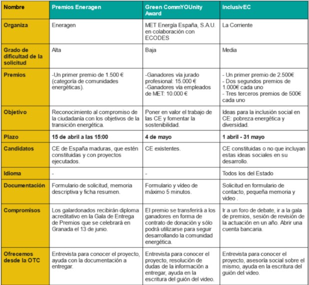 Desde la OTC Ceres ¡Os ayudamos a presentar vuestro proyecto sobre Comunidades Energéticas! a estas convocatorias de premios .